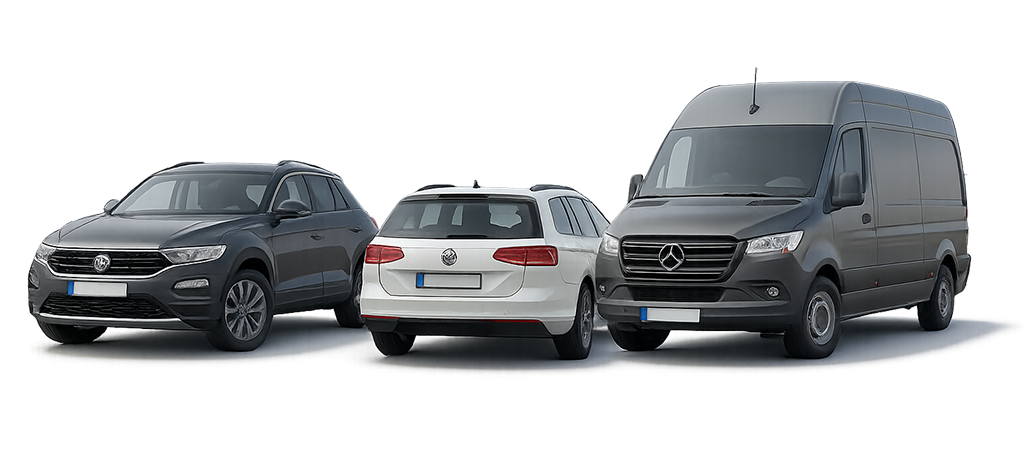 Ob Transporter / Sprinter, PKW, Anhänger, LKW oder Minibagger – bei uns finden Sie das passende Fahrzeug für jeden Einsatz.